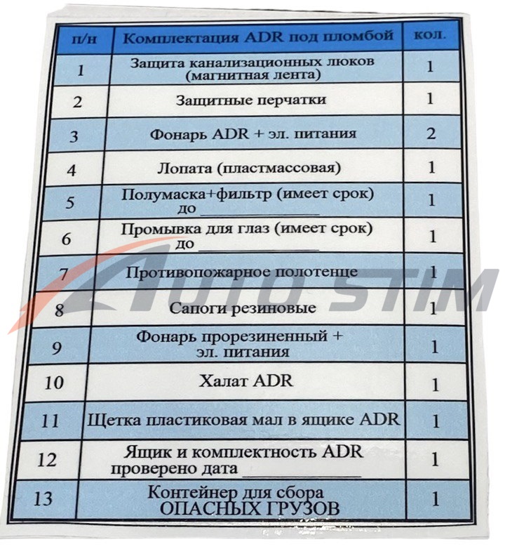 • Комплекты ADR Комплекты ADR