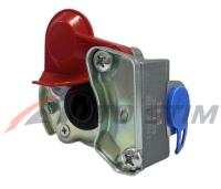 Это пневмосоединение с внутренней резьбой M16x1,5 предназначено для использования на тягачах. Оснащенное клапаном, оно обеспечивает надежное соединение в пневматических системах. Красный цвет облегчает идентификацию соединения, что особенно важно в условиях работы с различным оборудованием.