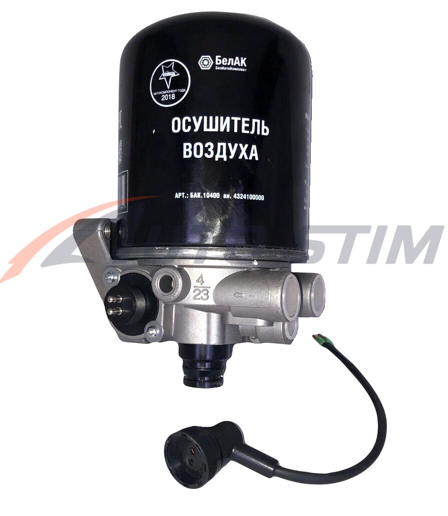 Аналог: 4324100000. Осушитель воздуха предотвращает попадание влаги на детали тормозной системы и обеспечивает безопасное и комфортное вождение. На корпус нанесена резьба, к которой крепится сменный фильтр (идет в комплекте, но дополнительно можно приобрести на нашем сайте). Внутри съемного картриджа — адсорбирующие гранулы. Когда в корпус осушителя поступает воздух, через канал он проходит в фильтр. Наибольшая часть конденсата впитывается. Воздух выходит через отверстие в патроне и направляется далее в систему.